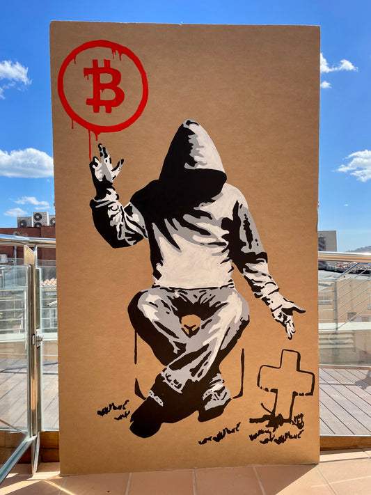 Acrylic Paint Cardboard Wall "Bitcoin or Die"