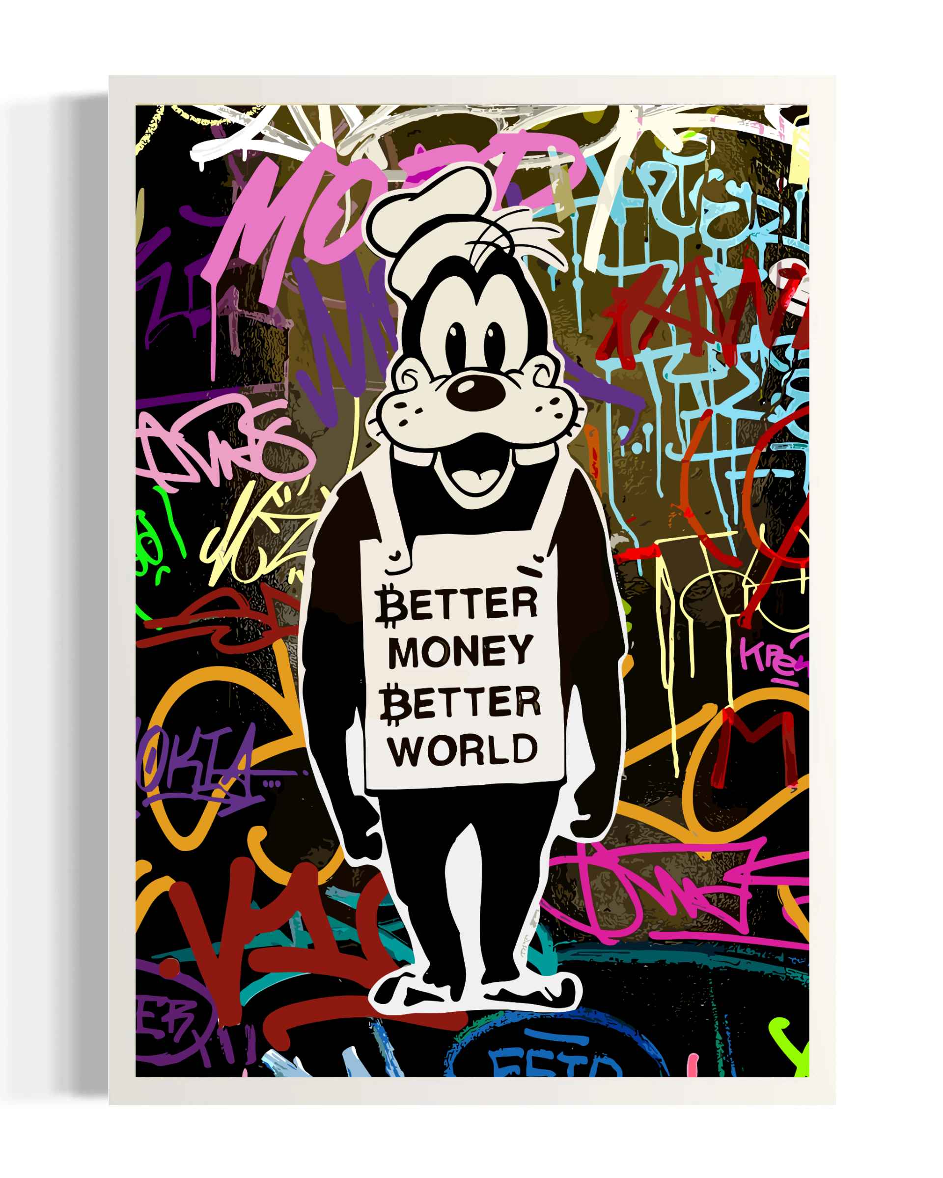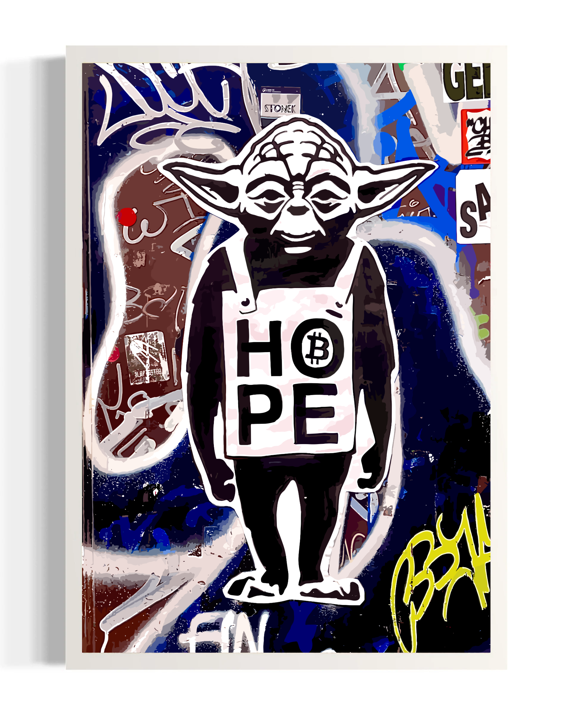 You will receive the iconic cyber design from Bitcoin Squad in one copy. You can choose between a signed original by Cyber or an unsigned poster.