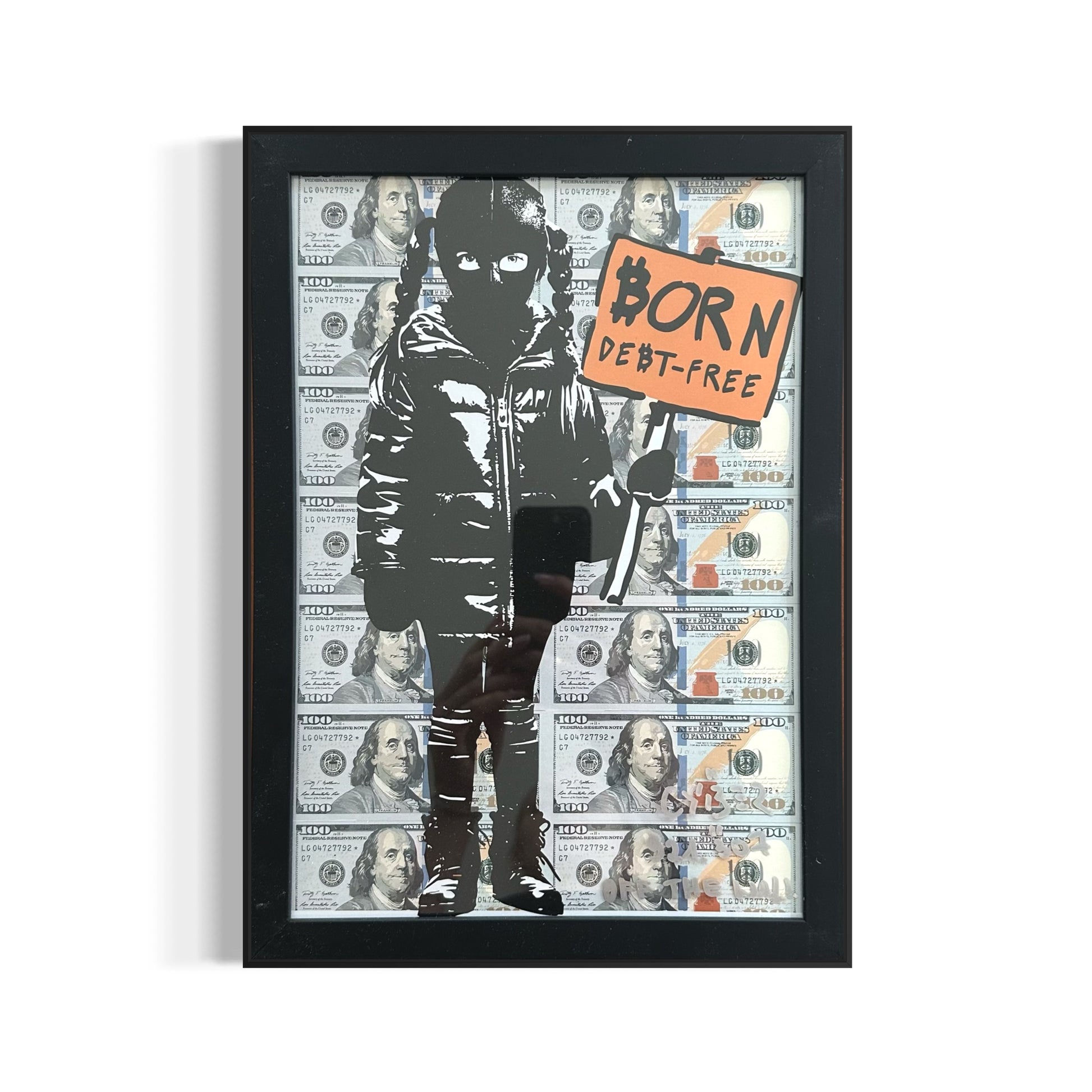 Own a piece of art history directly from the exhibition walls. Each "Off the Wall" Collection print is an original, one-of-a-kind artwork, presented exactly as it was displayed. You'll receive the piece complete with its authentic frame, meticulously signed and block-timed by "Street". Uniquely, even the frame itself carries a Bitcoin block number from the exhibition period, making each a truly unique collectible.