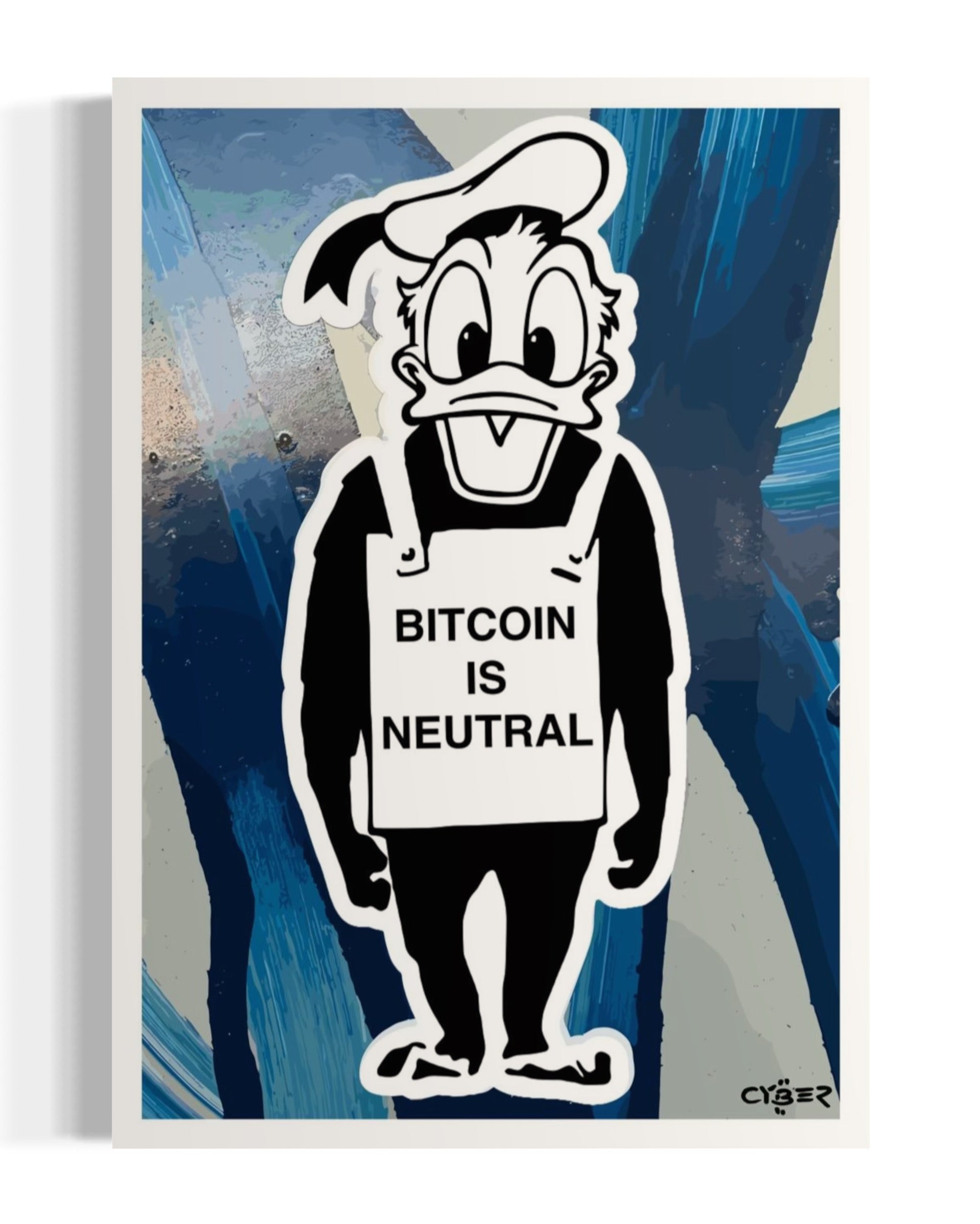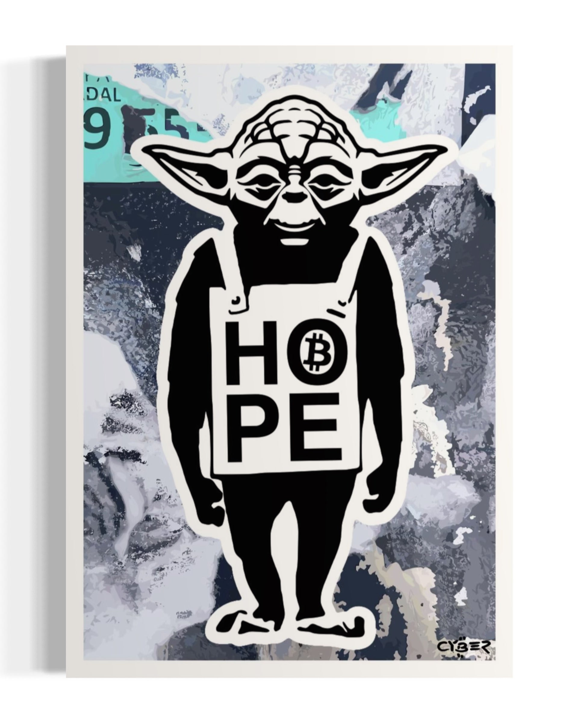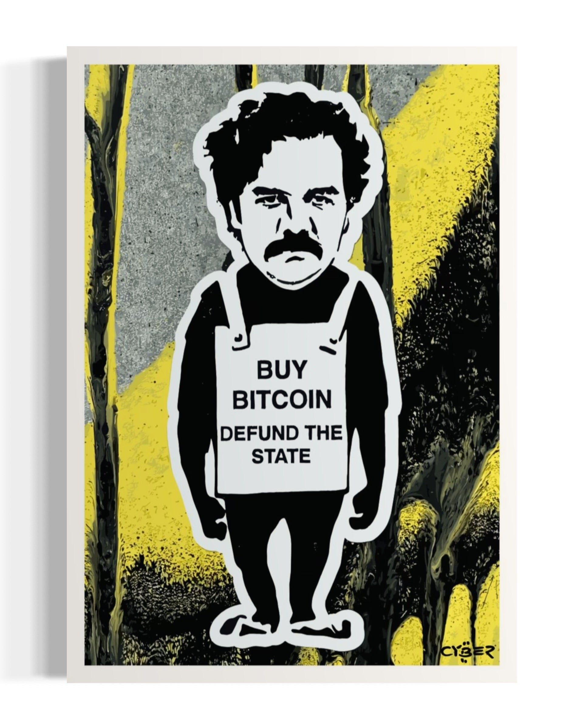 You will receive the iconic cyber design from Bitcoin Squad in one copy. You can choose between a signed original by Cyber or an unsigned poster.