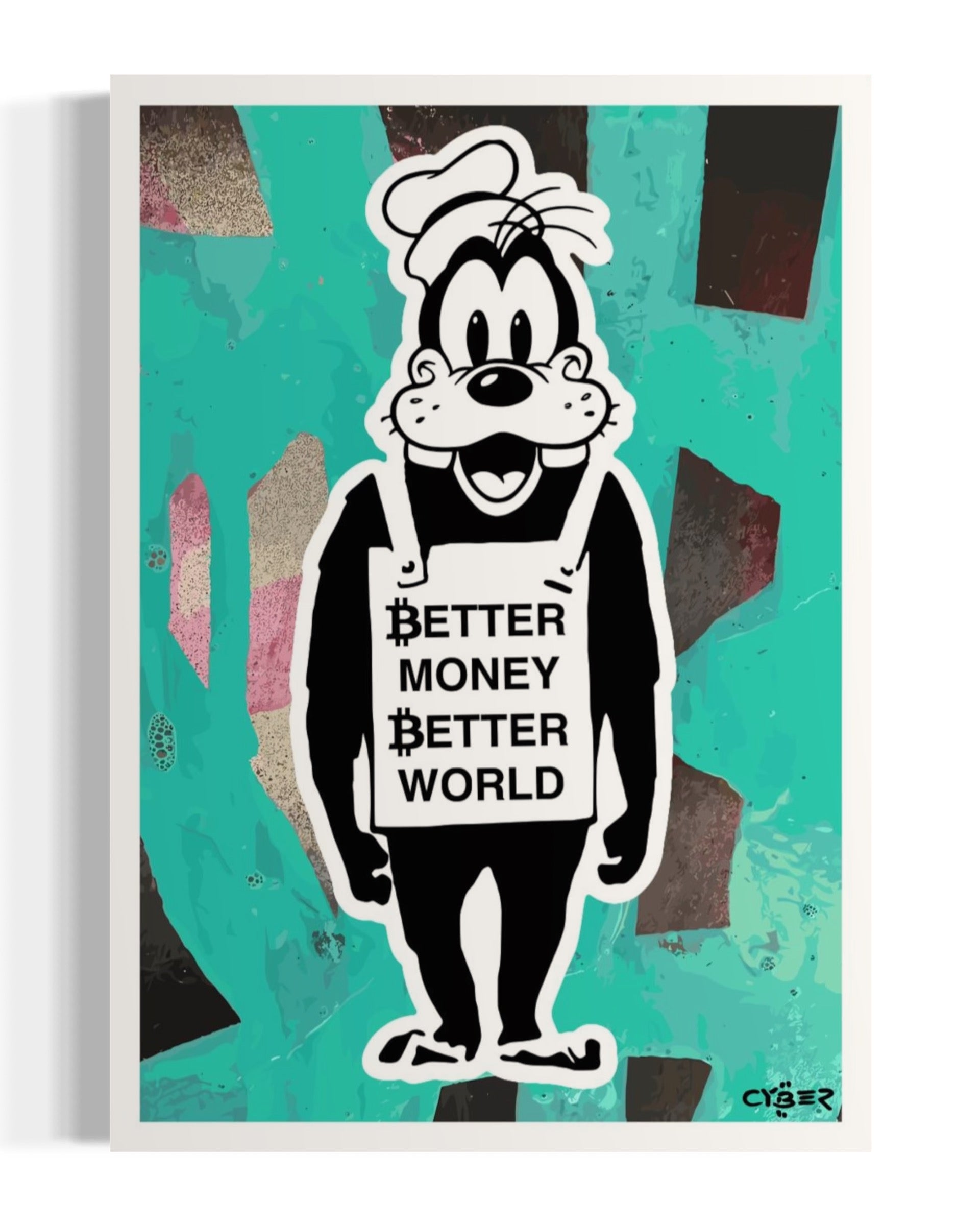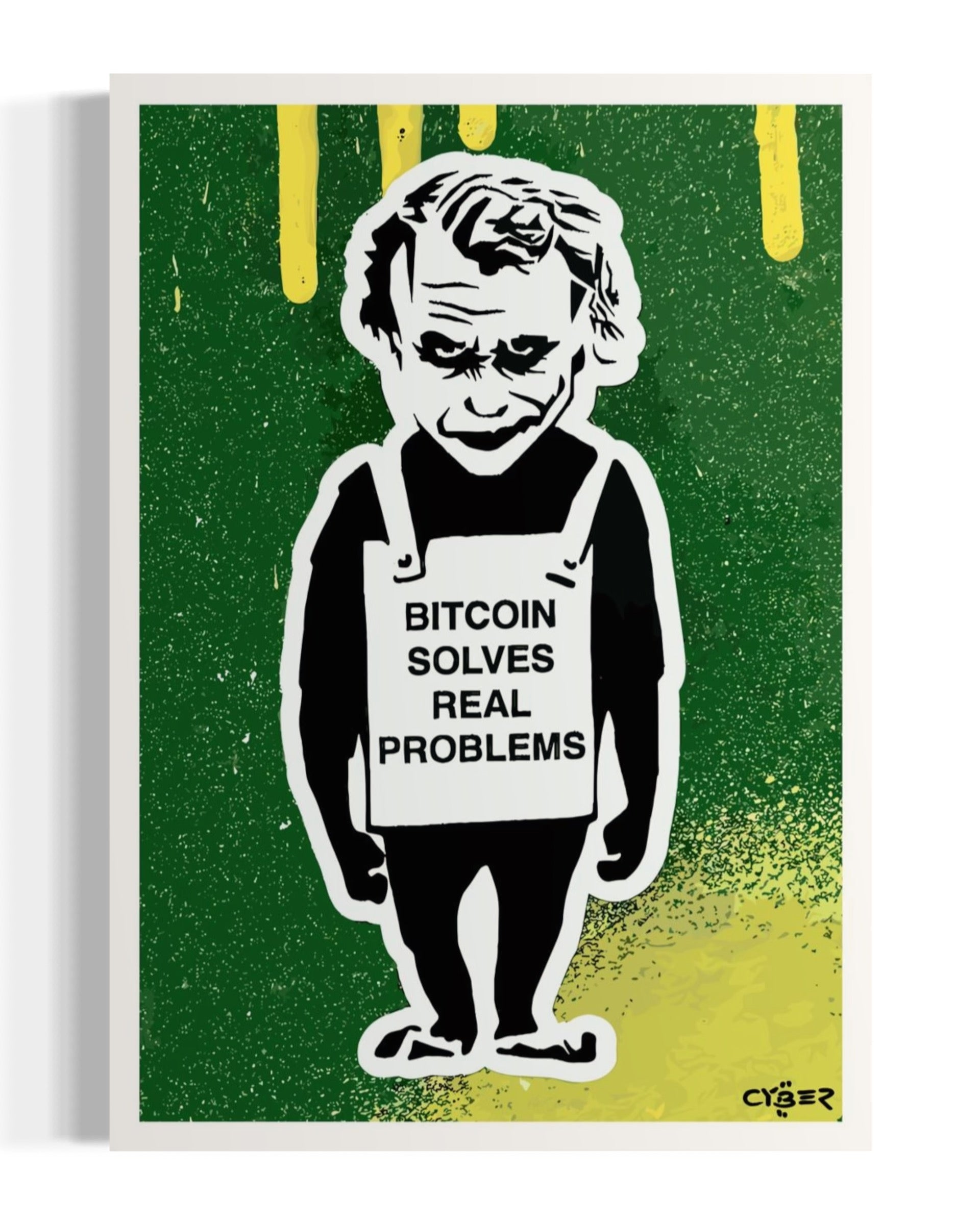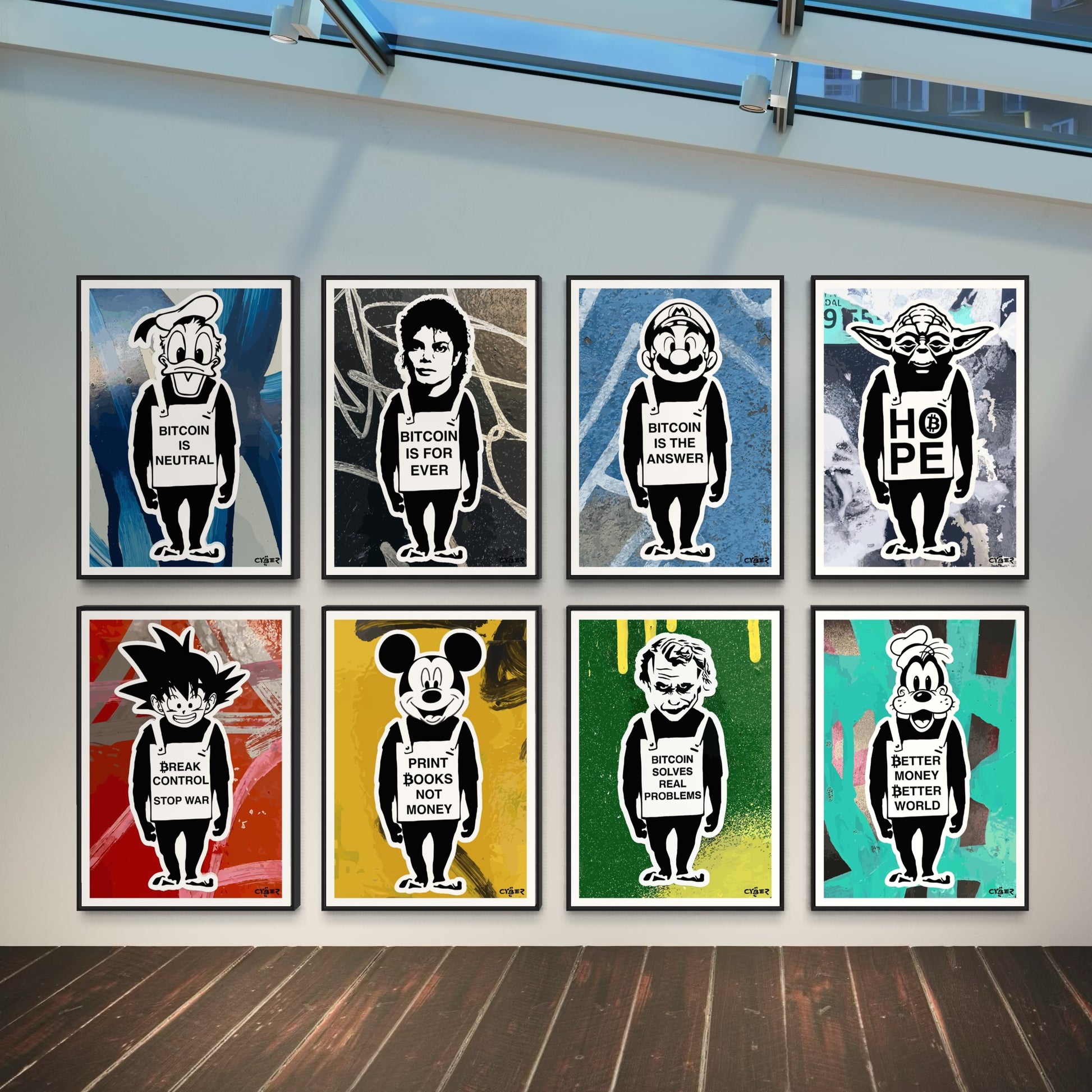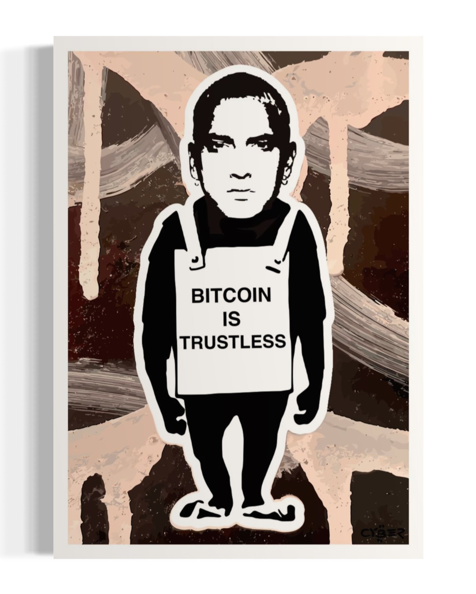You will receive the iconic cyber design from Bitcoin Squad in one copy. You can choose between a signed original by Cyber or an unsigned poster.